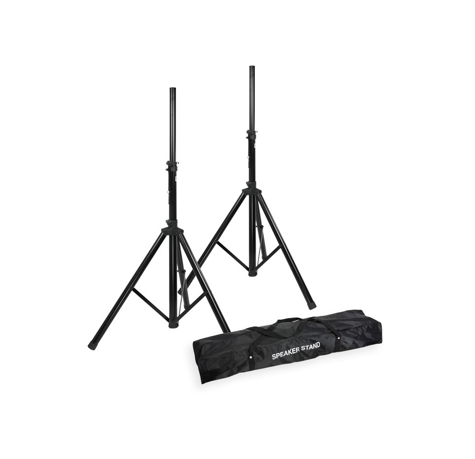 Ζευγάρι βάσεων ηχείων τρίποδες για επαγγελματικά DJ ηχεία και εξοπλισμό εκδηλώσεων. Οι βάσεις ηχείων προσφέρουν σταθερή στήριξη και ρυθμιζόμενο ύψος ώστε τα ηχεία να τοποθετούνται στο σωστό επίπεδο για καλύτερη διάχυση του ήχου στον χώρο.